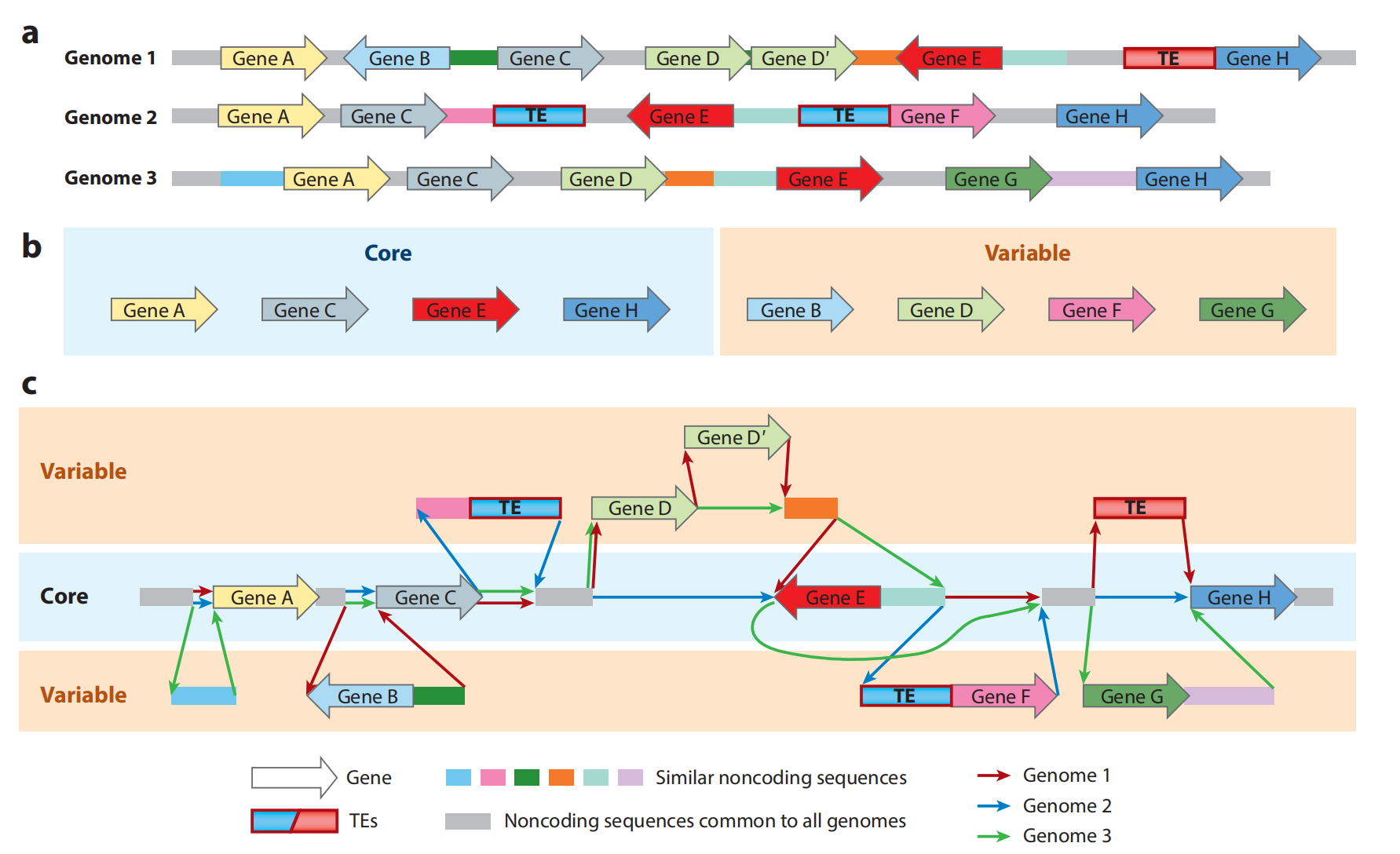 不同物種泛基因組研究對象可能不同:細菌基因組主要由編碼基因組成,非基因序列相對較少,因此細菌泛基因組研究更多的是針對蛋白編碼基因含量進行。在動植物上則因為基因組上有大量的具有一定功能的非基因序列,因此真核生物中主要對序列和基因兩種形式進行研究。與植物泛基因組不同,已發(fā)表的動物泛基因組中更多是以序列為單位進行。