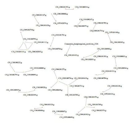 主要主要是基STRING數(shù)據(jù)庫提取目標(biāo)基因集的互作關(guān)系。對于數(shù)據(jù)庫中未收錄信息的物種,使用BLAST軟件,將目的基因與數(shù)據(jù)庫中的蛋白質(zhì)進(jìn)行序列比對,尋找同源蛋白,根據(jù)同源蛋白的互作關(guān)系對構(gòu)建互作網(wǎng)絡(luò)。構(gòu)建完成的蛋白質(zhì)互作網(wǎng)絡(luò)可導(dǎo)入Cytoscape軟件進(jìn)行可視化。