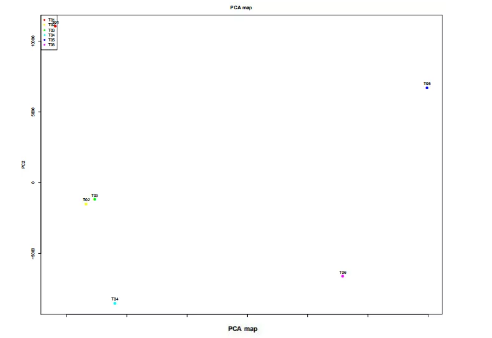 PCA分析橫坐標(biāo)代表著第一主成分,縱坐標(biāo)代表第二主成分,可以根據(jù)圖看出在第一主成分方向上樣本的距離越近,說明它們的主成分越相近,相關(guān)性越高。