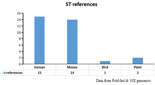 空間轉(zhuǎn)錄組則更是帶來了組織細胞空間信息,提供單細胞分辨率空間轉(zhuǎn)錄組視角,令科學(xué)家為之振奮。目前10 visium平臺率先開發(fā)動物冷凍樣本和人FFPE樣本空間轉(zhuǎn)錄組高通量測序技術(shù),已經(jīng)在人和鼠上有大量的研究報道。然而植物在空間轉(zhuǎn)錄組上研究報道并不多,瑞典斯德哥爾摩皇家理工學(xué)院Stefania團隊在Nature Plant(2017)[1] 、Nature Protocols(2018)[2]連續(xù)報道了擬南芥花序、楊樹葉芽、冷杉雌球果在空間轉(zhuǎn)錄組技術(shù)上研究,但是植物空間轉(zhuǎn)錄組技術(shù)仍然存在太多難題難以突破。