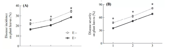植物接種病原菌后一周 發(fā)病率及嚴(yán)重程度