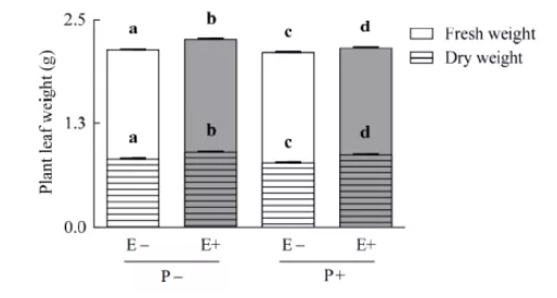 內(nèi)生菌提高了植株葉重,植物葉片鮮重和干重平均分別增加了5%和10%。
