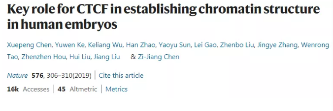 文獻(xiàn)名稱:Key role for CTCF in establishing chromatin structure in human embryos