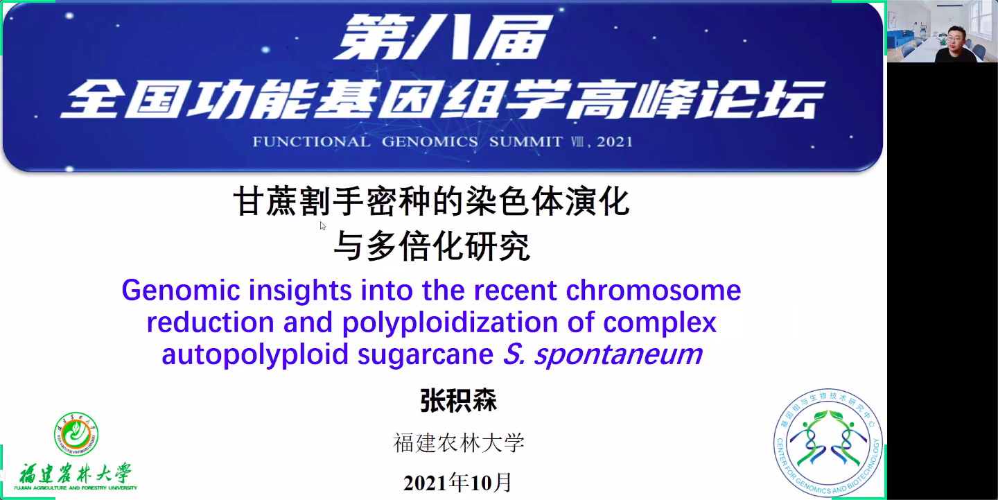 福建農(nóng)林大學(xué)張積森教授介紹了甘蔗的經(jīng)濟價值及甘蔗屬的分類,并對割手密品種(Np-X)的基因組組裝進(jìn)行了詳細(xì)解說,對甘蔗割手密種在禾本科的演化歷史進(jìn)行了進(jìn)一步講解,提出了不同染色體基數(shù)割手密群體的演化假說。同時還指出此研究重點解析了相關(guān)性狀的重要候選基因,最后展示了已經(jīng)開發(fā)的甘蔗數(shù)據(jù)庫以及推進(jìn)甘蔗全基因組選擇育種的幾點思考。