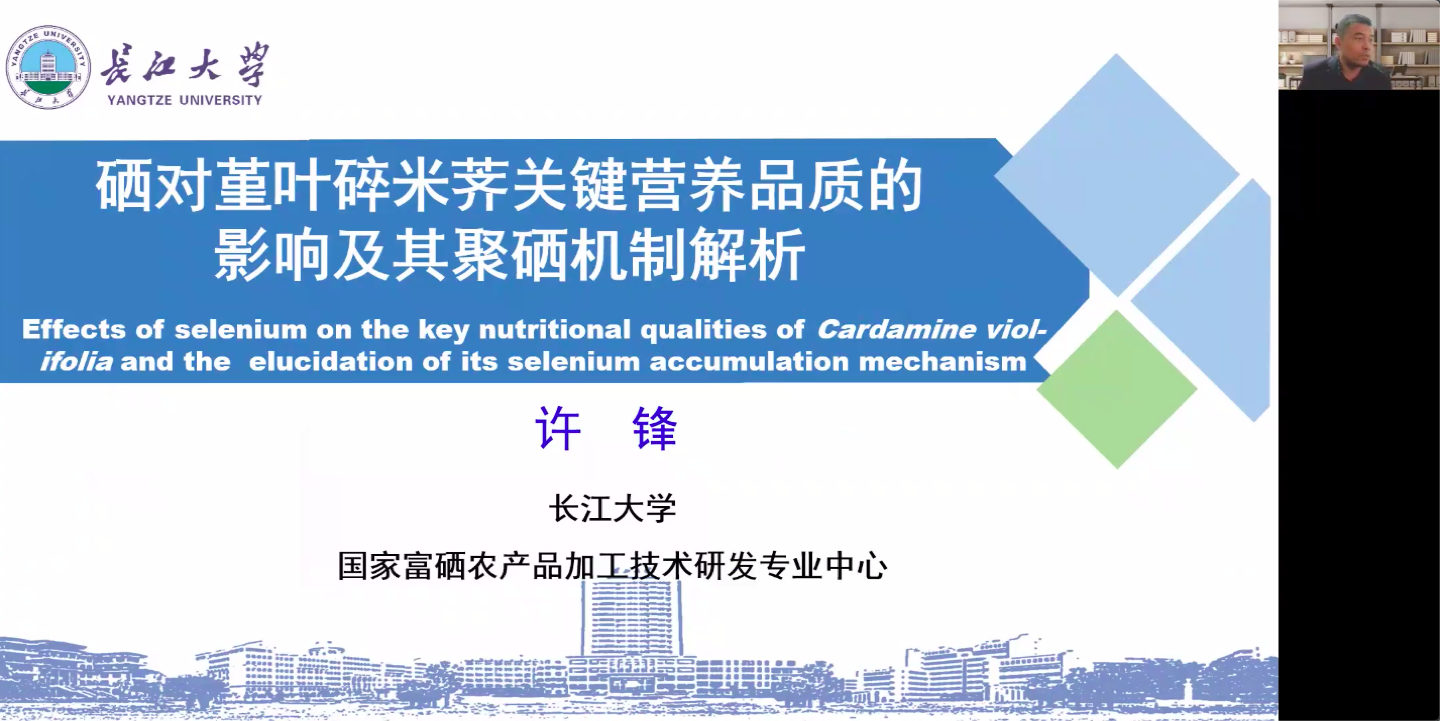 長江大學(xué)許鋒教授首先報告了外源硒處理下,堇葉碎米薺在幼苗期和成熟期都積累高含量的硒;然后講解了不同濃度的硒處理下,通過轉(zhuǎn)錄組、蛋白組和代謝組解析堇葉碎米薺的分子機制的研究工作,認(rèn)為相關(guān)基因的表達(dá)變化減少了硫元素消耗,優(yōu)化了硫元素利用,可能是堇葉碎米薺耐硒的重要原因。