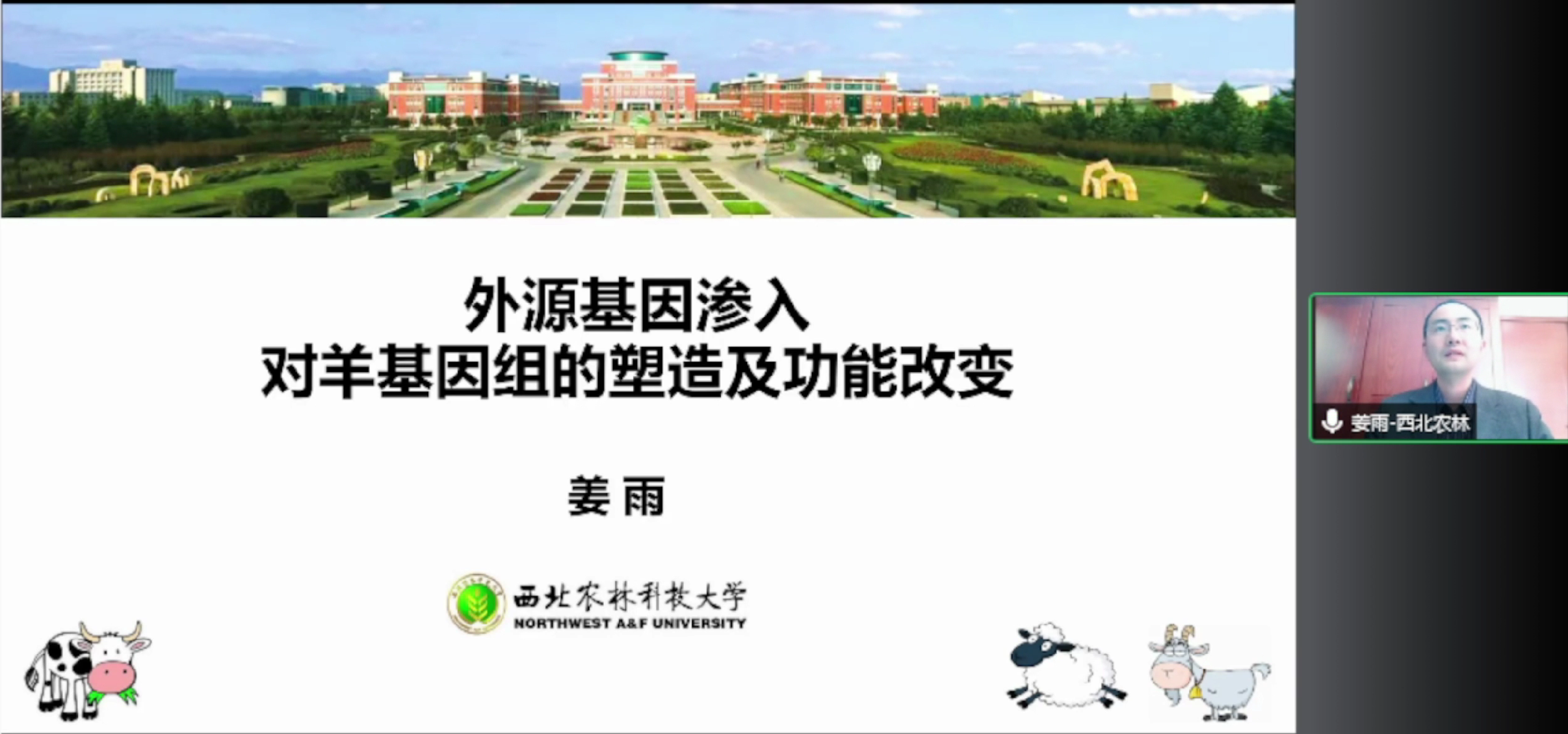 西北農(nóng)林科技大學(xué)姜雨教授報告詳述了基因滲入對羊基因組的塑造及其功能改變,其研究團(tuán)隊通過代表了170多個世界綿羊品種和七個綿羊?qū)僖吧锓N的全基因組序列分析,發(fā)現(xiàn)平均每只家養(yǎng)綿羊的基因組序列分別來自于伊朗的野生摩佛倫羊、東方盤羊和東亞盤羊的雜交滲入。說明起源于野生物種并滲入家養(yǎng)綿羊的獨特單倍型在表型多樣性和綿羊本地化適應(yīng)中起著重要作用。并發(fā)現(xiàn)綿羊的大角、小角、無角以及耳朵大小性狀相關(guān)基因。最后表示,從多個近緣野生物種、馴化祖先種的不同群體之間發(fā)生的滲入事件持續(xù)發(fā)生,遠(yuǎn)比想象的復(fù)雜,需要結(jié)合歷史和地理的遷徙知識討論。滲入單倍型在多種功能上發(fā)揮作用,其與已存在變異、新發(fā)突變通過快速組合,適應(yīng)新的環(huán)境。