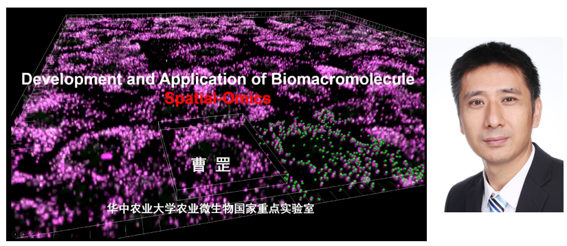 聆聽完湯老師的報(bào)告是不是意猶未盡,接下來第二位出場報(bào)告嘉賓是華中農(nóng)業(yè)大學(xué)楚天學(xué)者特聘教授,曹罡教授,曹老師的報(bào)告題目是:Development and Application of Single cell Biomacromolecule Spatail-Omics。。曹老師團(tuán)隊(duì)開發(fā)了一系列的單細(xì)胞生物大分子原位組學(xué)檢測新技術(shù),包括(單細(xì)胞)三維基因組學(xué)、單細(xì)胞原位測序技術(shù)、新型中低通量單分子FISH技術(shù)、蛋白互作網(wǎng)絡(luò)及其高通量空間定位技術(shù)和結(jié)合神經(jīng)環(huán)路的單細(xì)胞測序技術(shù)。同時(shí),并將這些技術(shù)運(yùn)用到神經(jīng)免疫學(xué)與病原感染、腫瘤等疾病的發(fā)生發(fā)展及其檢測研究中,極大的拓展了單細(xì)胞生物大分子空間組學(xué)的發(fā)展與應(yīng)用。