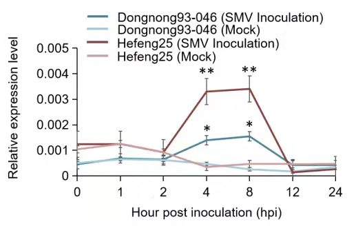 圖4 SMV抗性Dongnong93-046和對SMV性Hefeng25中的GmST1基因表達(dá)分析