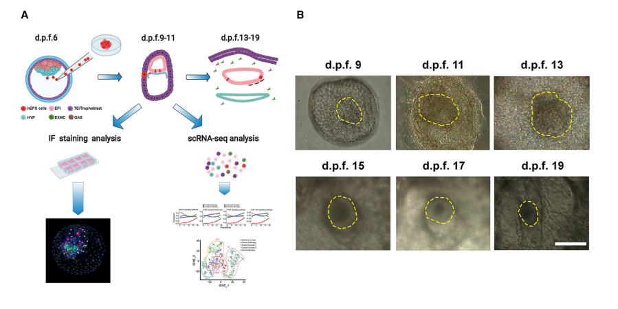 圖2 hEPSCs有助于植入后食蟹猴胚胎中的嵌合體形成
