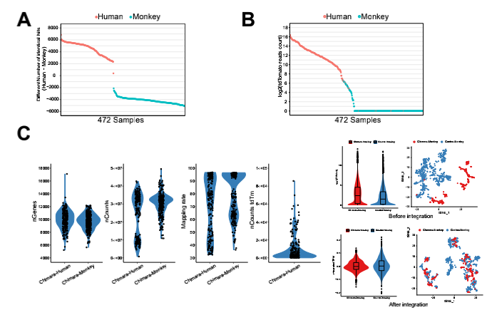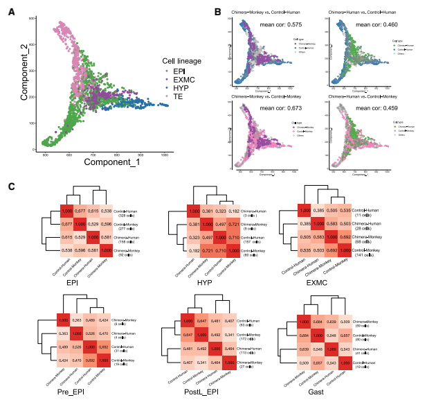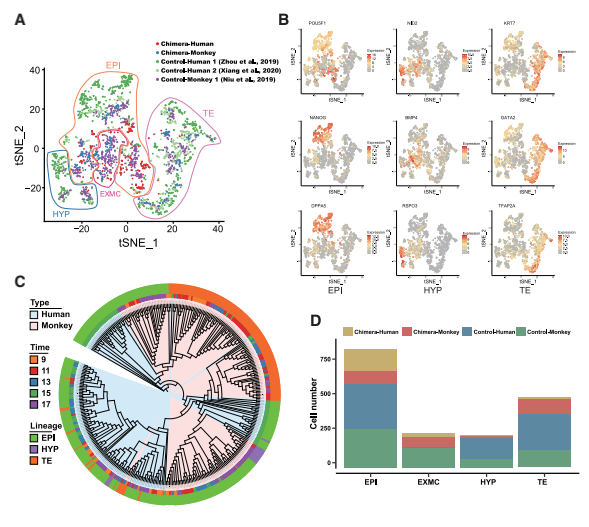 3、人猴嵌合胚胎的轉(zhuǎn)錄圖譜