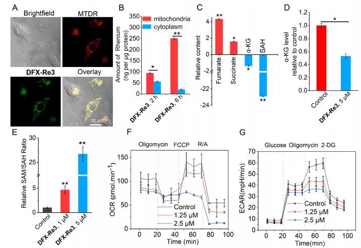 圖2. DFX-Re3影響線粒體代謝和關(guān)鍵表觀遺傳代謝物