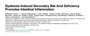 [2] Sinha SR, Haileselassie Y, Nguyen LP, Tropini C, Wang M, Becker LS, Sim D, Jarr K, Spear ET, Singh G, Namkoong H, Bittinger K, Fischbach MA, Sonnenburg JL, Habtezion A. Dysbiosis-Induced Secondary Bile Acid Deficiency Promotes Intestinal Inflammation. Cell Host Microbe. 2020 Apr 8;27(4):659-670.e5. doi: 10.1016/j.chom.2020.01.021.