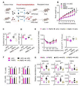 圖4.柑橘PMFE糞便移植對HFD小鼠具有代謝保護(hù)作用