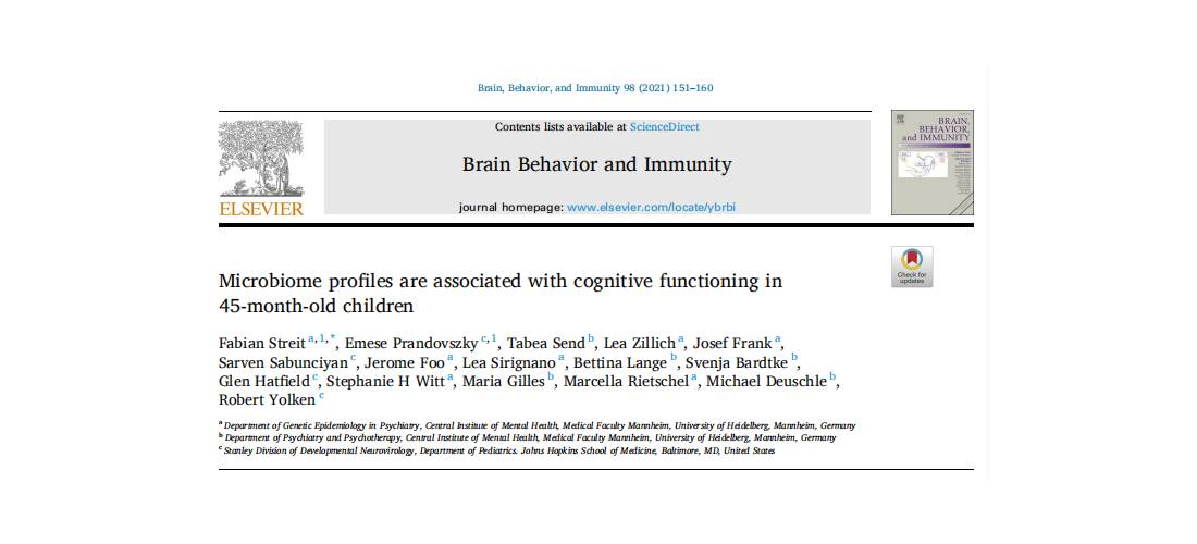 Streit F, Prandovszky E, Send T, et al. Microbiome profiles are associated with cognitive functioning in 45-month-old children. Brain Behav Immun. 2021;98:151-160. doi:10.1016/j.bbi.2021.08.001