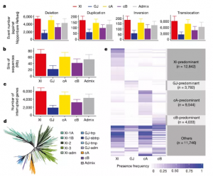 在用于GWAS的標(biāo)記中,最初使用的是SSR標(biāo)記,后來SNP標(biāo)記成為常用標(biāo)記。但是,研究人員逐漸意識(shí)到基于SNP標(biāo)記的GWAS分析不足以解釋的群體中全部的遺傳變異。并且,隨著測序技術(shù)的發(fā)展,在人以及諸多動(dòng)植物中發(fā)現(xiàn)了大規(guī)模的SVs [包括拷貝數(shù)變異(CNV)/存在缺失變異(PAV)和易位/倒置(translocations/inversions)]與疾病、馴化及重要農(nóng)藝性狀有關(guān)。本期推文,我們一起來看一下SVs在動(dòng)植物群體研究中的進(jìn)展。