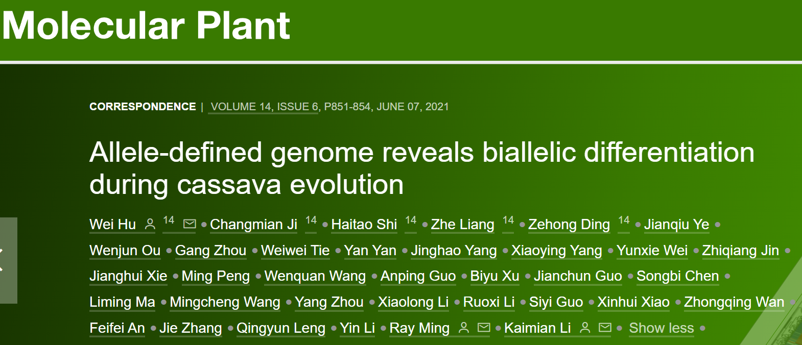 發(fā)表期刊:Molecular Plant