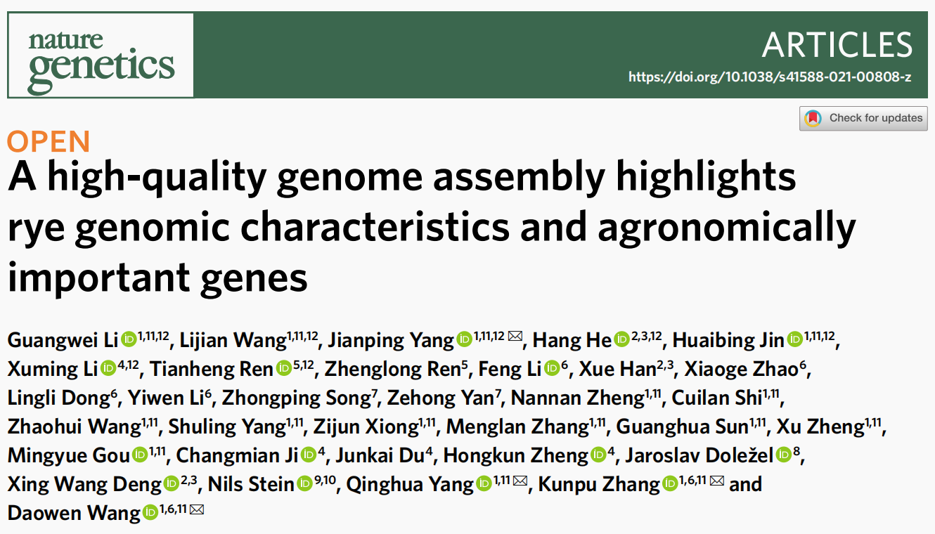 本研究對(duì)我國栽培的優(yōu)良品種威寧黑麥進(jìn)行了基因組測(cè)序,基因組組裝大小為7.74 Gb,其中93.67%被掛載到7條染色體上,重復(fù)序列占總基因組的90.31%。并基于高質(zhì)量基因組揭示了全基因組基因復(fù)制及其對(duì)淀粉生物合成基因的影響,解析了復(fù)雜儲(chǔ)存蛋白基因座位點(diǎn)、早抽穗性狀的基因表達(dá)特征以及黑麥中與馴化相關(guān)的染色體區(qū)域和基因座。本次研究結(jié)果對(duì)黑麥的基因組特性及其農(nóng)藝性狀調(diào)控基因有了新的認(rèn)識(shí),獲得了對(duì)進(jìn)一步研究黑麥馴化遺傳基礎(chǔ)可能有用的染色體區(qū)域和基因座。威寧黑麥基因組組裝對(duì)于破解黑麥基因組生物學(xué),深化比較谷類基因組學(xué)研究,加速黑麥及相關(guān)谷類作物的遺傳改良具有重要價(jià)值。