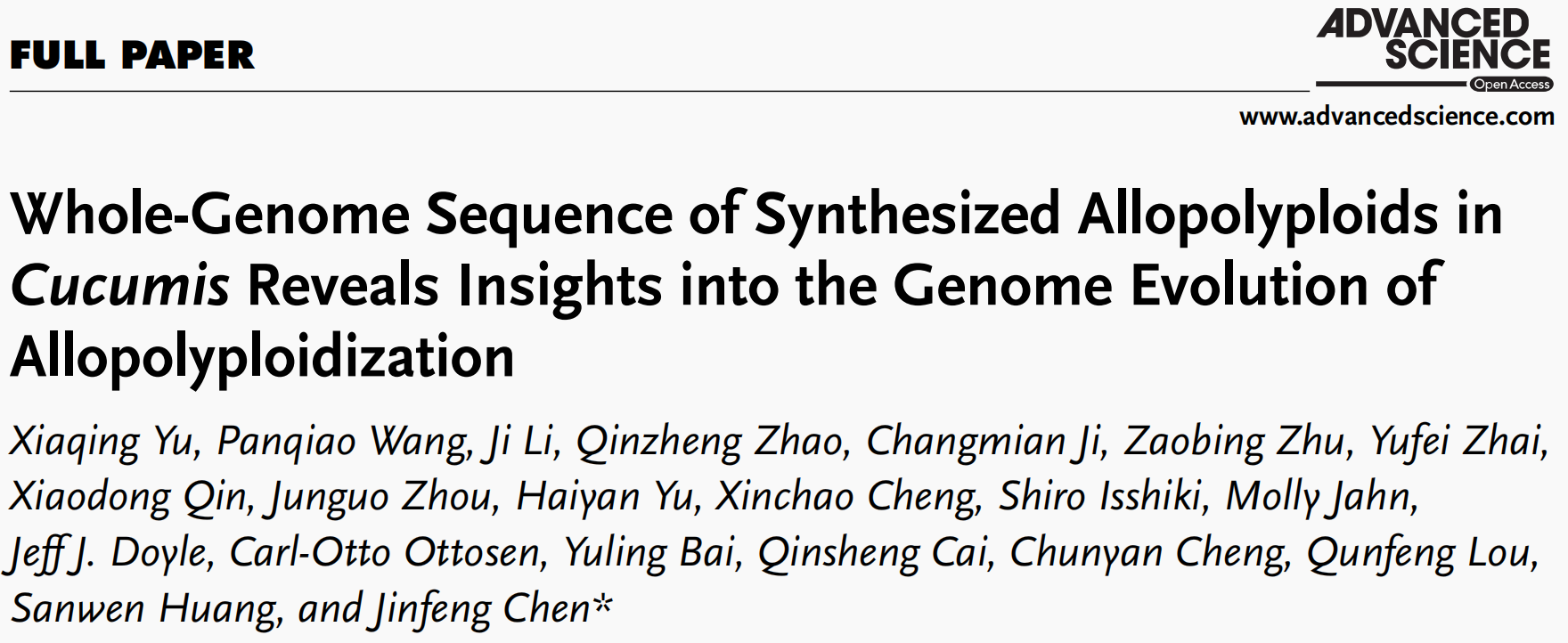 研究團(tuán)隊(duì)將栽培黃瓜(Cucumis sativus L., 2n=14)與野生酸黃瓜(C. hystrix Chakr., 2n=24)進(jìn)行種間雜交,通過胚胎拯救和染色體加倍,創(chuàng)造了甜瓜屬人工異源四倍體新物種“金瓜”。本研究利用PacBio+BioNano+Hi-C+Illumina等技術(shù)完成了“金瓜”的染色體水平基因組組裝,共組裝獲得530.8 Mb基因組(contig N50=6.5 Mb)將組裝的基因組序列掛載至19條假染色體上,并對(duì)其亞基因組進(jìn)行了√確區(qū)分。揭示并初步闡明了在異源多倍化物種形成三個(gè)階段中,種間雜交的作用顯著,以及亞基因組優(yōu)勢(shì)形成機(jī)制。金瓜不僅表現(xiàn)出明顯的雜種優(yōu)勢(shì),同時(shí)還具有很強(qiáng)的環(huán)境適應(yīng)性,是利用多倍體化開發(fā)作物新品種的真實(shí)范例。本研究對(duì)于加強(qiáng)植物多倍化研究及作物育種利用具有重要意義。