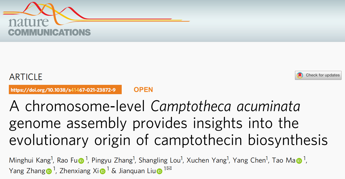 本研究通過PacBio和HiC技術(shù)組裝注釋了高質(zhì)量染色體級(jí)別的喜樹基因組,最終組裝大小414.95 Mb,contigN50=1.47 Mb。比較基因組等研究發(fā)現(xiàn),喜樹堿經(jīng)歷了一個(gè)獨(dú)立的全基因組復(fù)制,從中衍生出的許多基因與喜樹堿的生物合成有關(guān)。LAMT基因的功能分化和兩個(gè)SLAS基因的正向進(jìn)化都對(duì)喜樹堿在喜樹中的生物合成有很大貢獻(xiàn)。該研究揭示了喜樹中喜樹堿生物合成通路可能的分子進(jìn)化機(jī)制,發(fā)現(xiàn)高質(zhì)量基因組組裝在識(shí)別新次級(jí)代謝物進(jìn)化起源中的遺傳變化具有十分關(guān)鍵的作用。