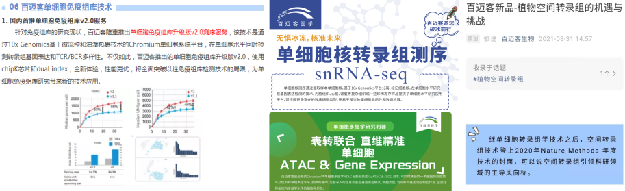 百邁客是國內(nèi)首批引進(jìn)10x genomics單細(xì)胞測序平臺,在國內(nèi)展開高通量單細(xì)胞測序服務(wù)。目前累計成功制備200余種組織類型、5000+例的樣本,覆蓋的物種和樣品類型包括人和小鼠的腦組織、肺臟、皮膚、視網(wǎng)膜、腎臟、脾臟、小腸,以及斑馬魚、擬南芥、水稻等。為了幫助更多老師開展單細(xì)胞空間多組學(xué)研究領(lǐng)域,資深單細(xì)胞技術(shù)團(tuán)隊(duì)在百邁客醫(yī)學(xué)微信公眾號創(chuàng)辦了百邁客單細(xì)胞 & 空間轉(zhuǎn)錄組專題欄目系列,可提供專業(yè)的課題方案設(shè)計、案例分享、數(shù)據(jù)分析和時空多維解決方案,同時含有發(fā)文思路、分析技巧、項(xiàng)目經(jīng)驗(yàn)等應(yīng)有盡有,百邁客人在過去的一年只為給您專業(yè)優(yōu)質(zhì)的單細(xì)胞&空間轉(zhuǎn)錄組系列服務(wù)!