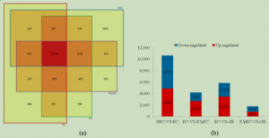 為了評(píng)估DEGs的潛在功能,作者使用GO數(shù)據(jù)庫(kù)對(duì)差異基因進(jìn)行注釋,在所有分組中,在biological process中所占比例大的是“代謝過(guò)程”,“細(xì)胞過(guò)程”、“單個(gè)生物過(guò)程”、“對(duì)刺激的反應(yīng)”和“定位”,在cellular component中所占比例是“細(xì)胞”和“細(xì)胞部分”,“細(xì)胞器”和“膜”,在“molecular function”中所占比例大的是“催化活性”、“轉(zhuǎn)運(yùn)蛋白活性”、“分子轉(zhuǎn)導(dǎo)活性”和“核酸”。作者利用KEGG數(shù)據(jù)庫(kù)對(duì)DEGs的功能進(jìn)行了分類,重點(diǎn)是生物學(xué)途徑。根據(jù)KEGG注釋,將6516個(gè)DEGs (NEC_VS_EC)注釋到128個(gè)通路,將2514個(gè)DEGs (EC_VS_ICpEC)注釋到126個(gè)通路,將3555個(gè)DEGs (EC_VS_GE)注釋到126個(gè)通路,將1062個(gè)DEGs (ICpEC_VS_GE)注釋到111個(gè)通路。這些通路主要集中在“代謝途徑”、“次生代謝物的生物合成”、“植物-病原菌相互作用”和“植物激素信號(hào)轉(zhuǎn)導(dǎo)途徑”。此外,還有數(shù)十個(gè)基因參與了“類黃酮生物合成”、“苯丙烷生物合成”、“玉米素生物合成”、“脂肪酸生物合成”和“不飽和脂肪酸生物合成”。