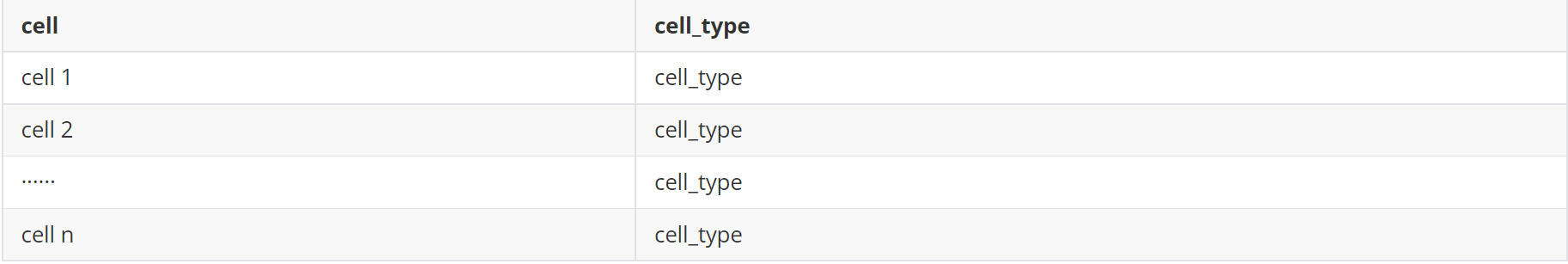 (1)細胞注釋文件(meta.txt,兩列,分別為細胞id和細胞類型)