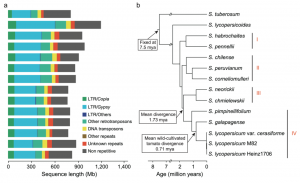 圖1. 野生和栽培番茄的基因組構(gòu)成和系統(tǒng)發(fā)育關(guān)系