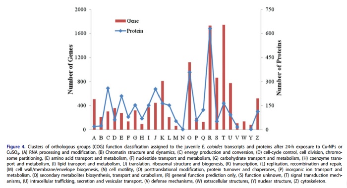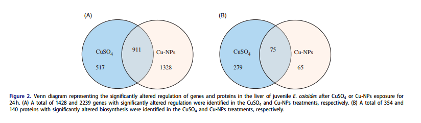 Epinephelus coioides(橙斑石斑魚),一種原生型雌雄同體的海洋魚類,在中國廣泛流行,因?yàn)槠鋬?yōu)良的肉質(zhì)使其具有很高的商業(yè)價(jià)值。目前,E. coioides主要在漂浮網(wǎng)箱養(yǎng)殖,在自然環(huán)境中很容易就可以受環(huán)境污染影響。本研究結(jié)合生理分析,轉(zhuǎn)錄組和蛋白組分析研究納米銅或硫酸銅暴露下石斑魚體內(nèi)蛋白及基因的差異變化。