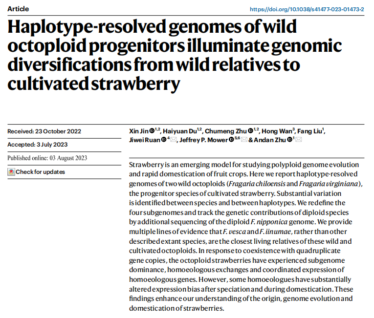 野生八倍體草莓單倍型基因組解析