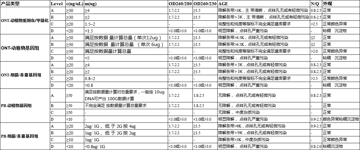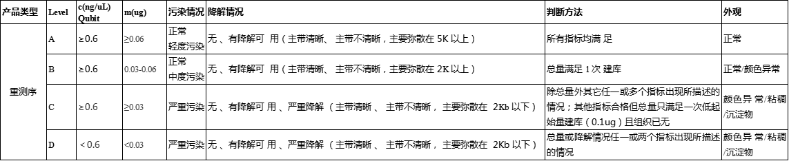 level D:質(zhì)量完全不滿足建庫測序要求,不建議使用的樣品。