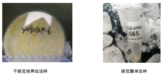 注意:所有菌類樣品必須分離好菌體或菌絲送樣,切勿連帶培養(yǎng)基一起寄送,帶培養(yǎng) 基的菌體無法提取。