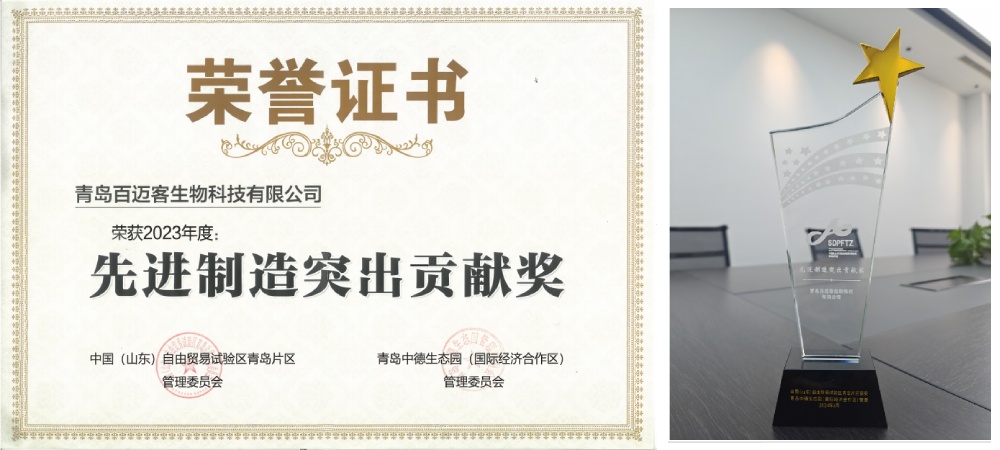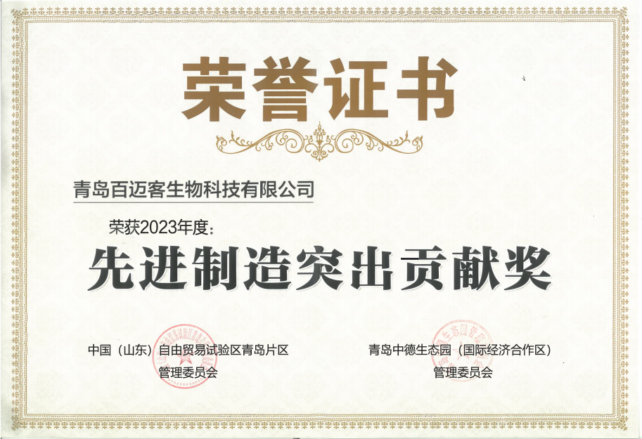 近日,中國(山東)自由貿(mào)易試驗(yàn)區(qū)青島片區(qū)管理委員會(huì)組織開展了2023年度“先進(jìn)制造突出貢獻(xiàn)獎(jiǎng)”“常青藤企業(yè)獎(jiǎng)”等九個(gè)獎(jiǎng)項(xiàng)評(píng)選,旨在大力弘揚(yáng)企業(yè)家精神,激發(fā)企業(yè)和企業(yè)家的創(chuàng)業(yè)熱情,推動(dòng)先進(jìn)制造業(yè)發(fā)展。百邁客生物從眾多企業(yè)中脫穎而出,榮獲“2023年度先進(jìn)制造突出貢獻(xiàn)獎(jiǎng)“。