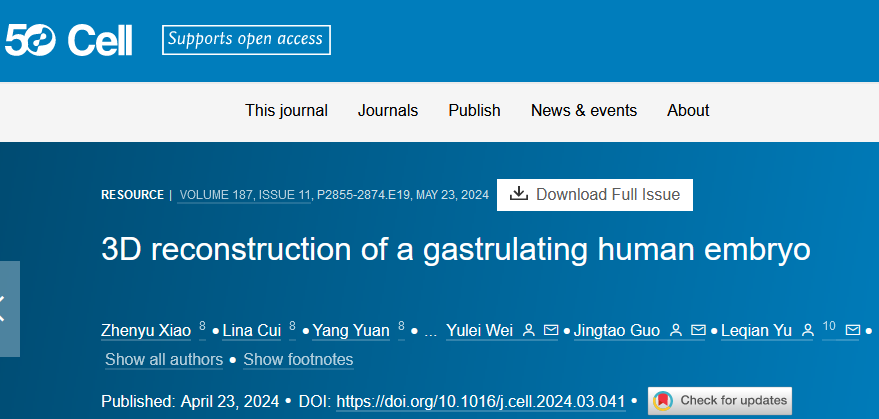 英文標題:3D reconstruction of a gastrulating human embryo