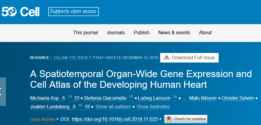 英文標題:A Spatiotemporal Organ-Wide Gene Expression and Cell Atlas of the Developing Human Heart