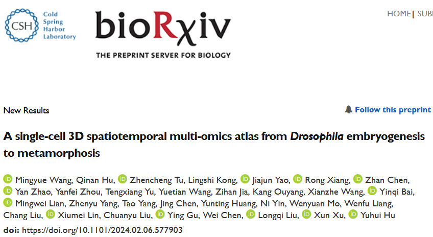 英文標題:A?single-cell?3D?spatiotemporal?multi-omics?atlas?from?Drosophila?embryogenesis?to?metamorphosis