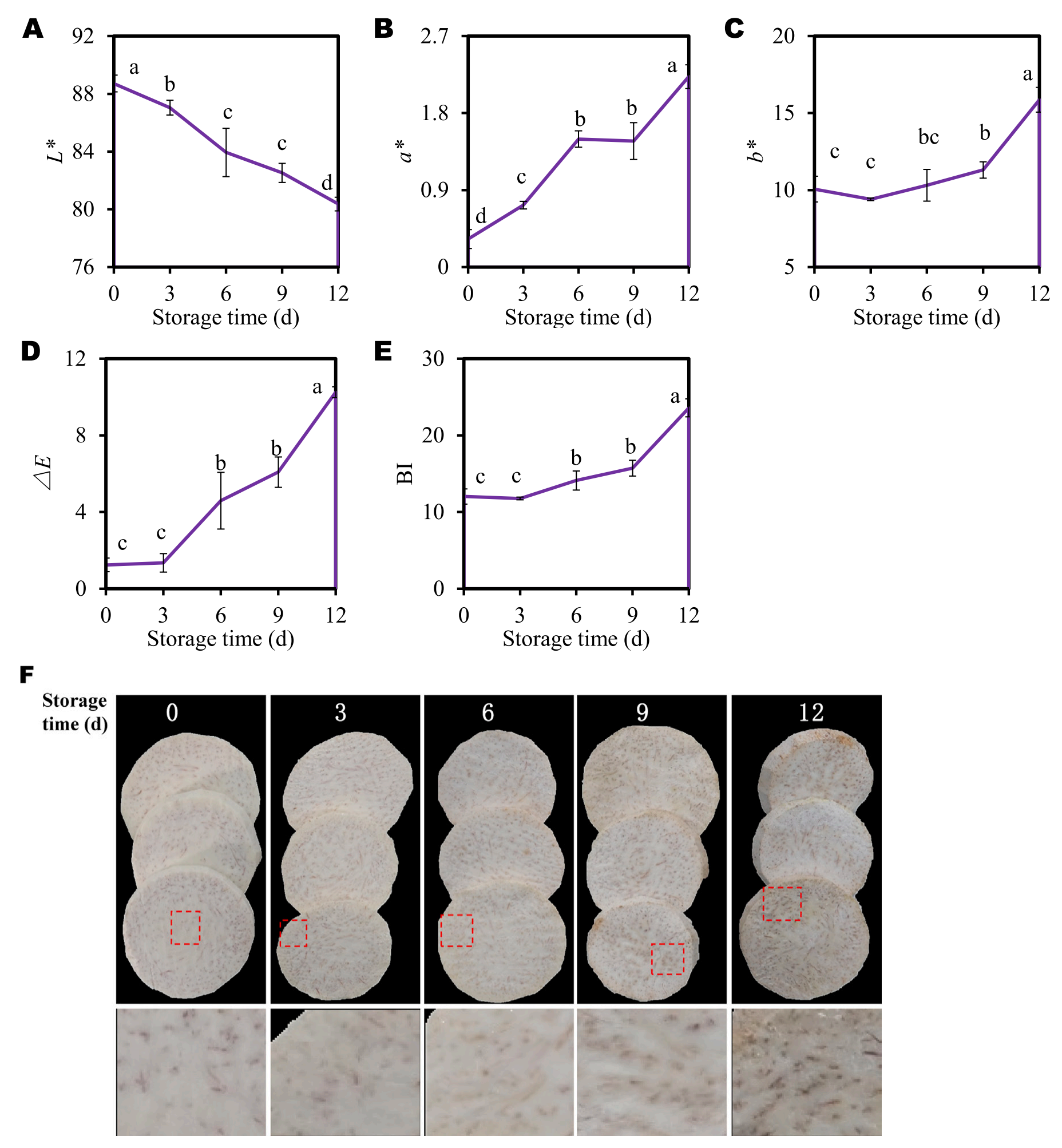 圖1-4℃貯藏期間切片芋頭的褐變發(fā)展