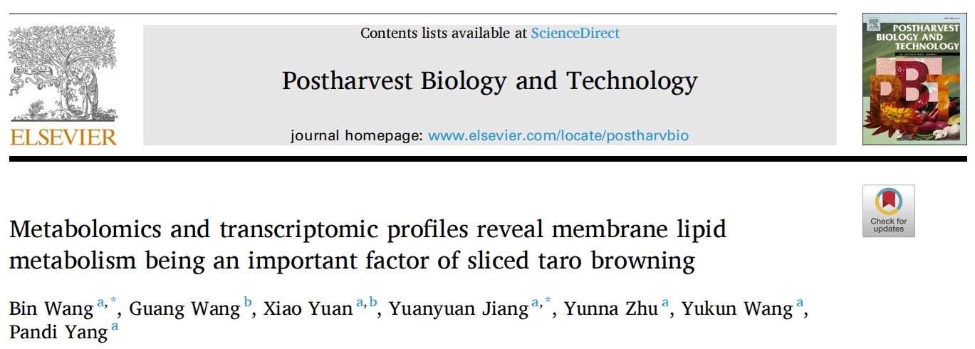 2024年5月9日,韶關(guān)學(xué)院和華南農(nóng)業(yè)大學(xué)在國際學(xué)術(shù)期刊?Postharvest Biology and Technology?發(fā)表一項重要研究成果,題為:Metabolomics and transcriptomic profiles reveal membrane lipid metabolism being an important factor of sliced taro browning。該研究通過植物廣靶代謝組和轉(zhuǎn)錄組分析研究了芋頭片在冷藏過程中的褐變發(fā)展及潛在的褐變機制。這項研究有助于我們了解鮮切食品的褐變機制,為未來的研究和減輕冷藏條件下切片芋頭褐變的潛在策略提供寶貴的見解。