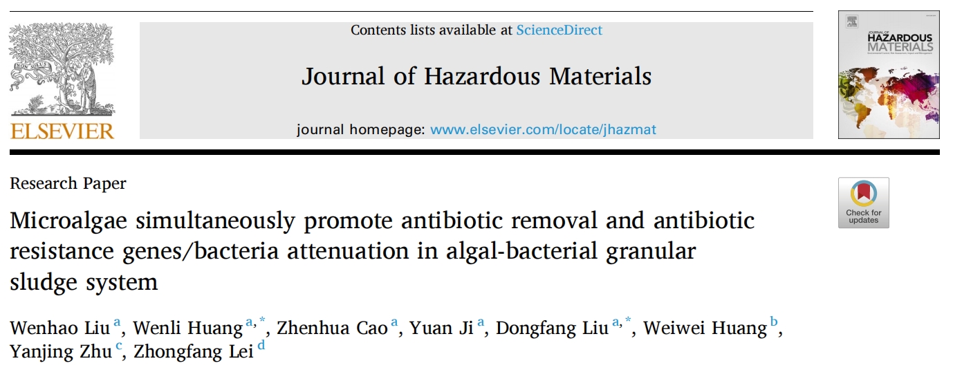 英文標(biāo)題:Microalgae simultaneously promote antibiotic removal and antibiotic resistance genes/bacteria attenuation in algal-bacterial granular sludge system