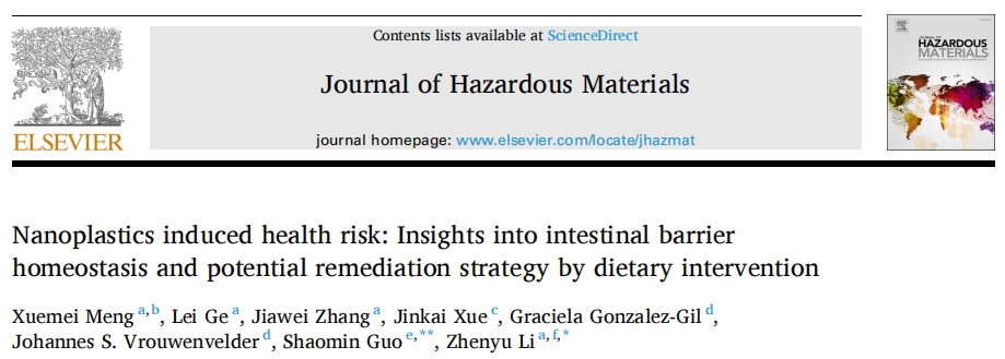 Meng X, Ge L, Zhang J, Xue J, Gonzalez-Gil G, Vrouwenvelder JS, Guo S, Li Z.Nanoplastics induced health risk: Insights into intestinal barrier homeostasis and potential remediation strategy by dietary intervention. J Hazard Mater.?2024 Jul 5;472:134509. doi: 10.1016/j.jhazmat.2024.134509. Epub 2024 May 3.