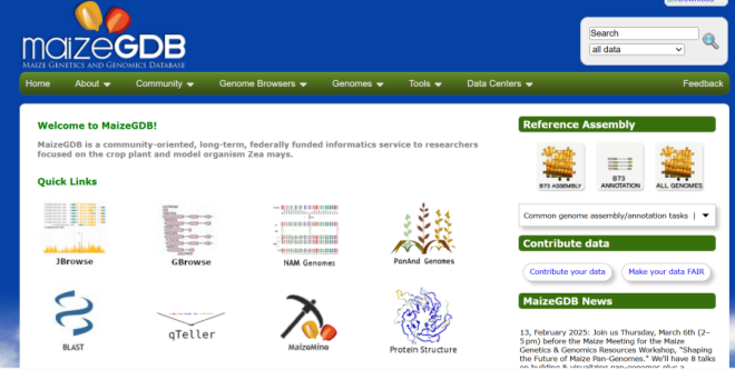 ☆?玉米基因組和遺傳分析平臺(tái):數(shù)據(jù)庫(kù)包含了玉米的基因組序列、基因注釋、遺傳圖譜、突變體信息、表達(dá)數(shù)據(jù)、相關(guān)的文獻(xiàn)和研究工具。旨在支持玉米遺傳學(xué)和基因組學(xué)的研究,為科研工作者提供訪問和分析玉米的遺傳和基因組數(shù)據(jù)的平臺(tái)。