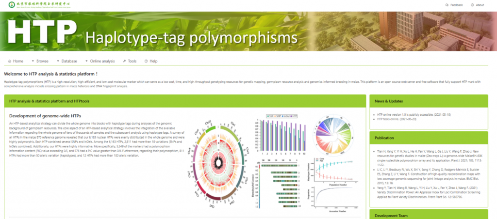 ☆?利用玉米單倍型標(biāo)簽多態(tài)性分析工具:HTP數(shù)據(jù)庫(kù)(HTPdb):該數(shù)據(jù)庫(kù)覆蓋了育種中常用的3,587個(gè)重要玉米自交系,其中包括172,921個(gè)非冗余的HTP等位基因變異,提供了豐富的單倍型標(biāo)簽資源。同時(shí),基于HTP標(biāo)記的特點(diǎn),研究人員在HTPTools中集成了智能區(qū)塊數(shù)據(jù)填充算法,當(dāng)僅需獲取少量HTP標(biāo)記的基因型時(shí),可以通過該功能快速地獲取對(duì)應(yīng)區(qū)塊的完整數(shù)據(jù)。