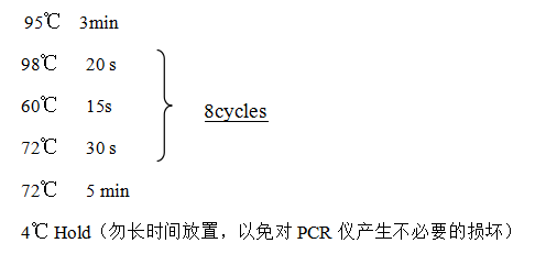 | d | Hold at 4°C (勿長(zhǎng)時(shí)間放置, 以免對(duì)PCR儀產(chǎn)生不必要的損壞) |