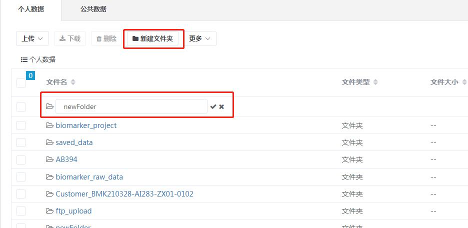 2、在我的數(shù)據(jù)中,建議新建文件夾后,進入新文件夾,點擊“上傳”,選擇上傳文件或 FTP 上傳。