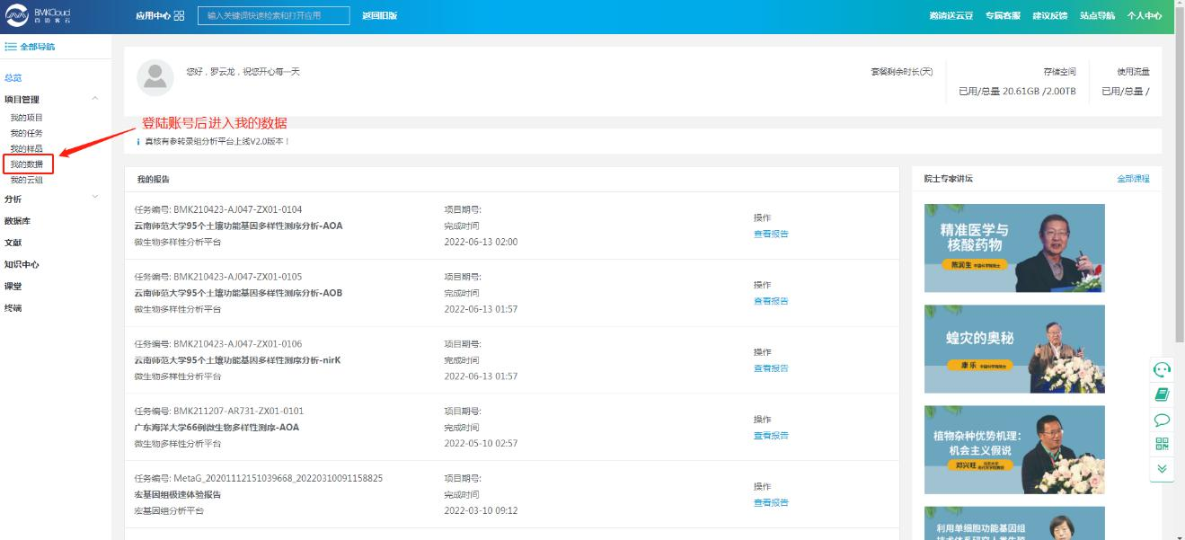 1、登陸賬號后,在主頁面查看項目管理,進入“我的數(shù)據(jù)”