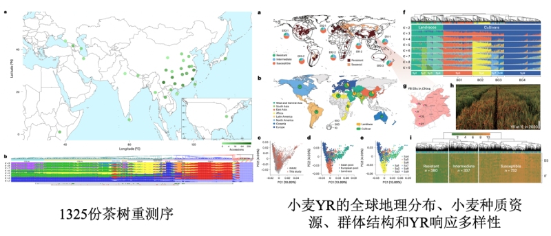 群體重測序與多組學(xué)(轉(zhuǎn)錄組、代謝組、表觀組等)的聯(lián)合應(yīng)用,是解析植物復(fù)雜性狀遺傳機(jī)制、挖掘優(yōu)異基因的核心技術(shù)范式,尤其在植物育種與物種演化研究中價值突出。例如,在水稻紋枯病抗性研究中,通過對178份商業(yè)水稻進(jìn)行測序和人工接種,結(jié)合GWAS分析與重測序,發(fā)現(xiàn)了天然優(yōu)勢等位基因SBRR1,并完成遺傳機(jī)制解析和基因功能驗(yàn)證;在小麥條銹病研究中,對來自全球2,191個小麥種質(zhì)的變異組數(shù)據(jù)和超過47,000條跨多種環(huán)境和病原菌品系的YR抗性數(shù)據(jù),利用GWAS分析分析抗性基因位點(diǎn),克隆抗性基因并評估其有效性;在1325份茶樹及其近緣種重測序研究中,揭示茶樹與其近緣種的遺傳分化、進(jìn)化瓶頸、種間基因滲入以及野生資源保護(hù)現(xiàn)狀,同時結(jié)合GWAS和mGWAS鑒定了葉片形態(tài)、兒茶素、咖啡因等農(nóng)藝性狀及風(fēng)味代謝物的關(guān)鍵候選基因;在甜橙的起源與在馴化研究中,收集測序226份柑橘材料,組裝了甜橙和酸橙的T2T基因組以及4個相關(guān)柑橘品種的基因組,明確甜橙起源于酸橙與柑橘的雜交。