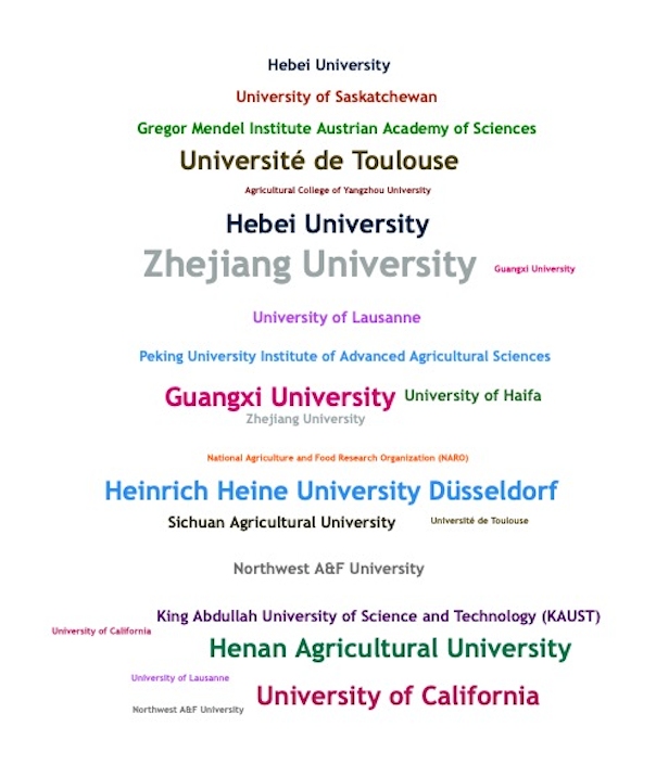 2025年Nature Genetics植物類文章發(fā)表單位以中國科研機(jī)構(gòu)為主導(dǎo),在全球39篇植物科學(xué)領(lǐng)域的文章中,第一單位來自中國的文章達(dá)30篇,占總數(shù)的約77%。核心單位包括南京農(nóng)業(yè)大學(xué)、華中農(nóng)業(yè)大學(xué)、中國農(nóng)業(yè)大學(xué)、浙江大學(xué)、中國農(nóng)業(yè)科學(xué)院棉花研究所、北京大學(xué)現(xiàn)代農(nóng)業(yè)研究院等;國際合作方面,加州大學(xué)戴維斯分校、以色列海法大學(xué)、比利時根特大學(xué)、澳大利亞莫納什大學(xué)等機(jī)構(gòu)較活躍。