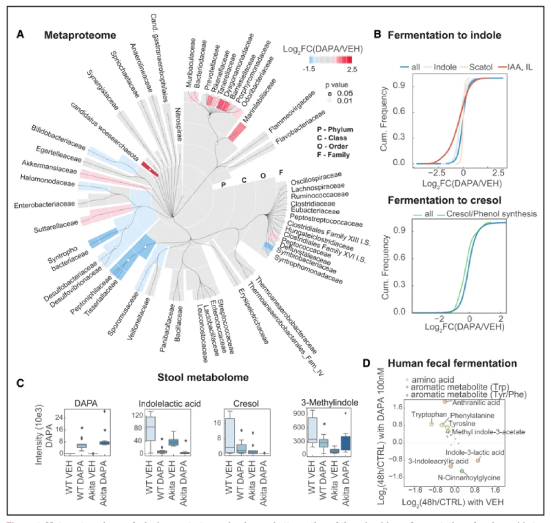 作者采用Ingenuity Pathway Analysis(IPA)通路分析,結(jié)果顯示最關(guān)鍵的生物通路是急性期反應(yīng)信號(hào)通路。在上游調(diào)控因子分析中,發(fā)現(xiàn)促炎性細(xì)胞因子IL17a被確定為糖尿病相關(guān)蛋白網(wǎng)絡(luò)的上游調(diào)節(jié)因子。而另一個(gè)上游調(diào)節(jié)因子是腫瘤壞死因子,作為細(xì)胞因子和炎癥信號(hào)的主要調(diào)節(jié)因子存在。