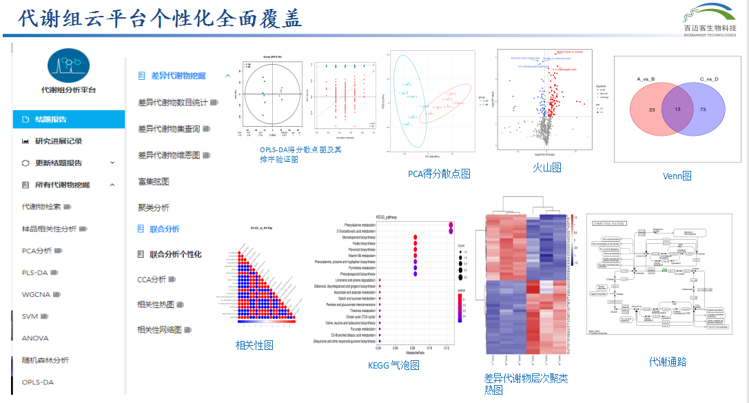 轉(zhuǎn)錄組代謝組聯(lián)合分析三、代謝組云平臺—多種聯(lián)合分析任你搭配