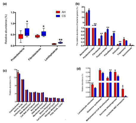 2、根據(jù)宏基因組學(xué),AH組和CS組之間瘤胃微生物組的組成和功能差異