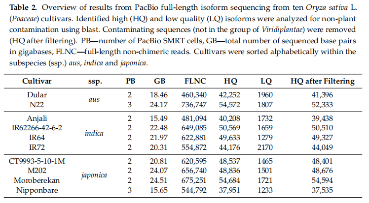 解決這一問(wèn)題的一個(gè)顯而易見(jiàn)的辦法是對(duì)所需的基因組進(jìn)行測(cè)序、組裝和注釋。但是,這種方法比較昂貴和耗時(shí)。在這篇文章里,我們探索了一種更有針對(duì)性的RNA-Seq序列方法來(lái)測(cè)序和重建了三個(gè)不同亞種的水稻品種的部分轉(zhuǎn)錄本作為參考,Pacific Bioscience(PacBio)屬于提供高通量全長(zhǎng)轉(zhuǎn)錄本序列的新一代測(cè)序方法。該方法已成功應(yīng)用于對(duì)現(xiàn)有植物轉(zhuǎn)錄本及注釋的探索和擴(kuò)展,如高粱、小麥、甘蔗、野生棉花、不同的穗型草、苜蓿等。